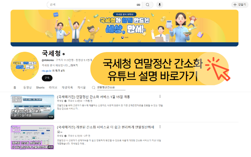 (어려우신 분들은 아래 국세청 유튜브에서 연말 정산 간소화 서비스에 대한 자세한 설명을 영상으로 확인 하세요.)
